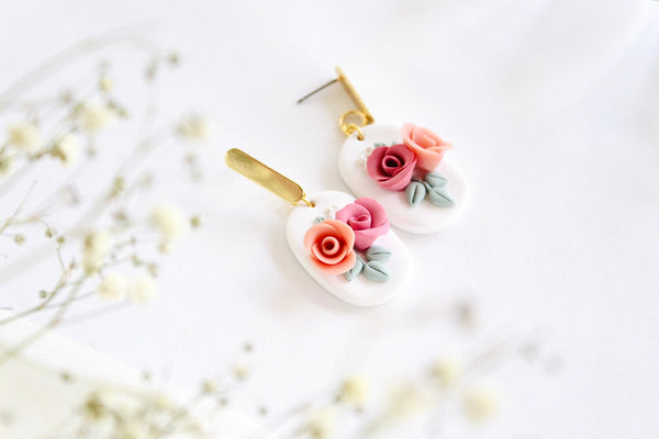 Bella~ Floral bouquet clay earrings| floral bouquet polymer clay Earrings | bridal shower earring gift | boho earrings | flower earrings