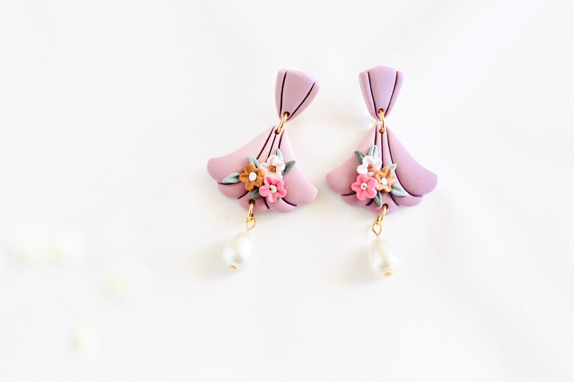 Boho earrings, Snow White inspired earrings , bridal clay earring