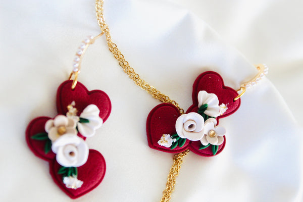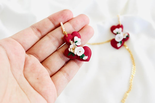 - Henna ~ floral 3 heart dangle for valentine | heart valentine earrings