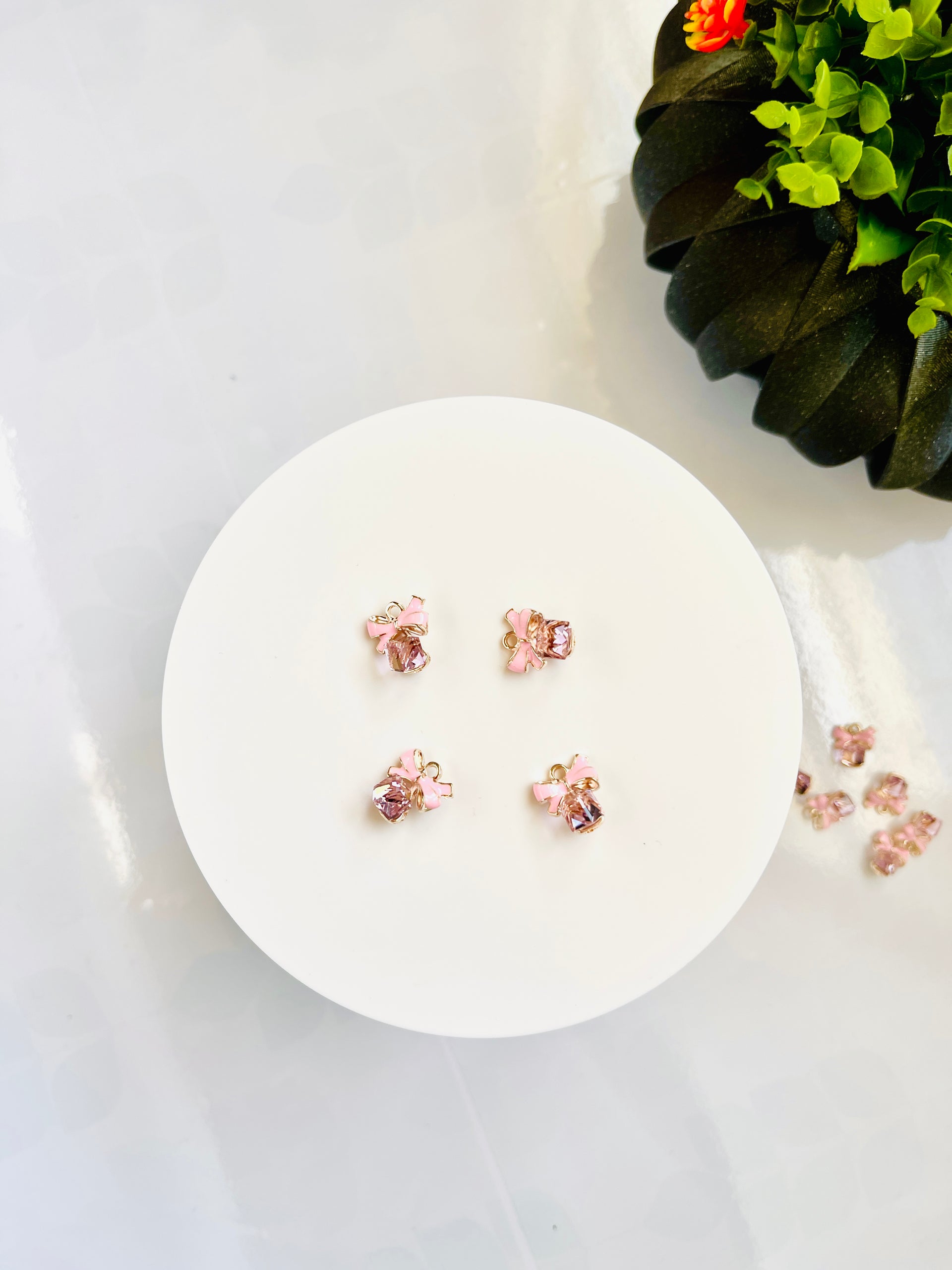 - Pink cube bow charms no2 gold plate alloy charm